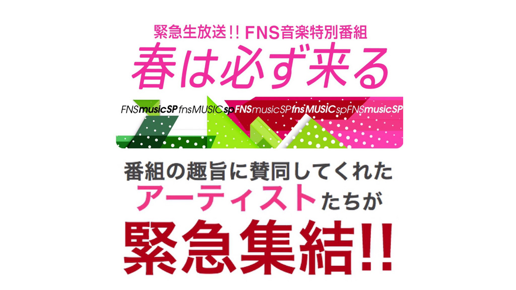 このため、フジテレビでは、代替番組として「春くるプロジェクト」と題した一連の番組を制作することを決め、その一環として『緊急生放送!FNS音楽特別番組』の放送が急遽決定された。