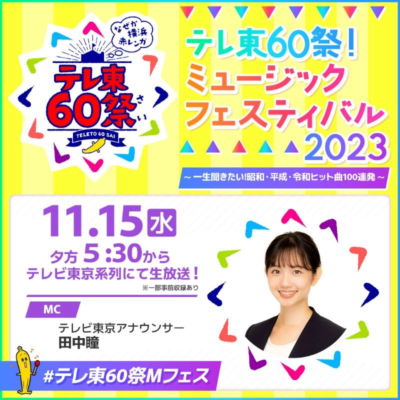 イベント初日となる11月15日(水)には、「テレビ東京の60年」を詰め込んだ音楽特番『テレ東60祭!ミュージックフェスティバル2023~一生聞きたい!昭和・平成・令和ヒット曲100連発~』が放送されます。